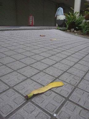 家の近くの路上にて、道に落ちてたバナナの皮。