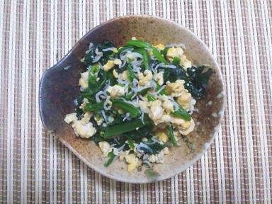 ホウレンソウとジャコと卵の和え物。