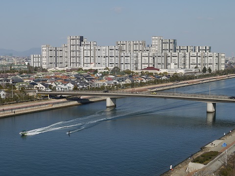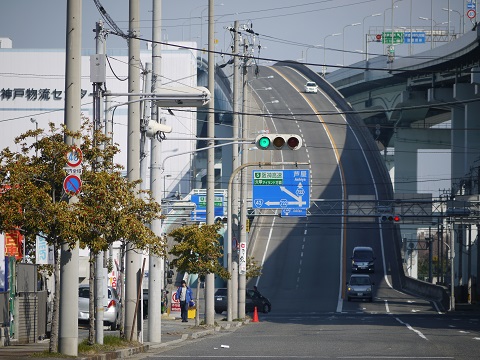 振り返って神戸市側は工場地帯&立体交差萌え。