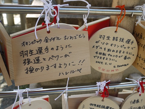 なんと羽生選手本人も数年前に参拝して絵馬を奉納したとのこと。