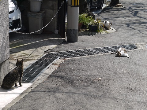 参道は猫だらけでした。くつろぎすぎとる。。。
