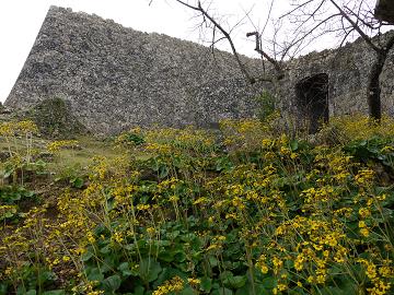 花に囲まれる城址。