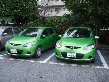 隣も緑のデミオでした。(←※もちろんレンタカー)