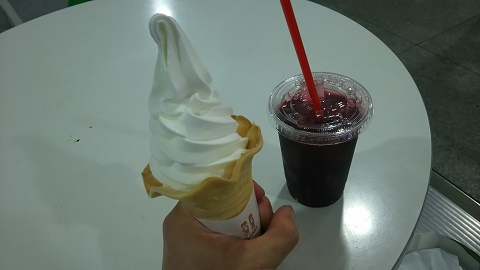 そして空港で頂くハスカップジュースと牧場ソフト(゚д゚)ウマー。
