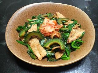 ゴーヤとニラの豚キムチ風独り炒め