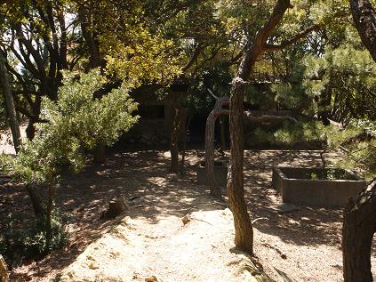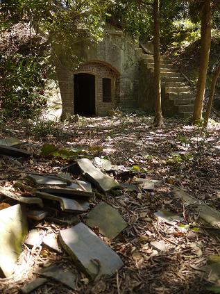 海岸沿いの森に埋もれる海軍聴音所跡。