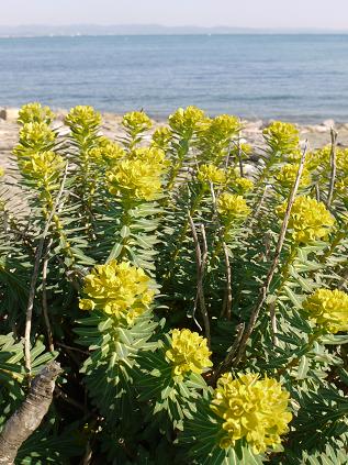 蒲浦海岸。黄色い花が咲き誇っておりました。