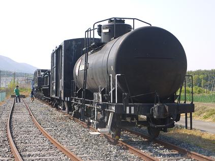 いやー、念願のすごい車輪の貨車を満喫してもうご満悦。