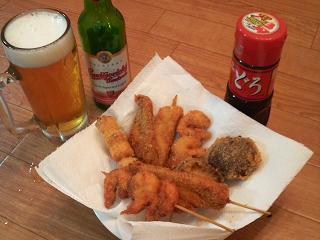 明日が休日なことを記念して、本日は独り串カツ大会。